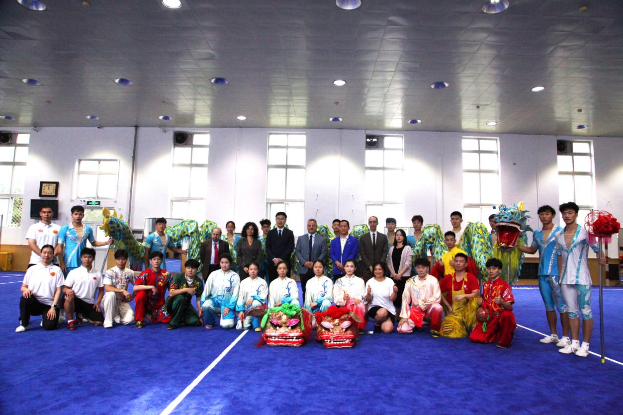 会后,使馆一行参观我校体育设施并观摩武术表演。