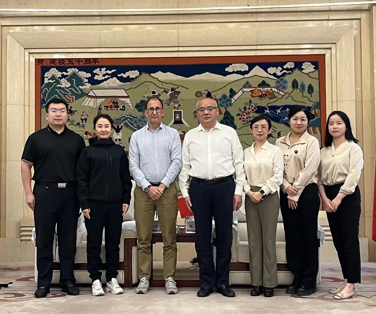 5月17日下午,法国体育俱乐部主席大卫·甘亚兹(David GUIGAZ)一行2人来我校交流访问。党委常委、副校长张健会见代表团。