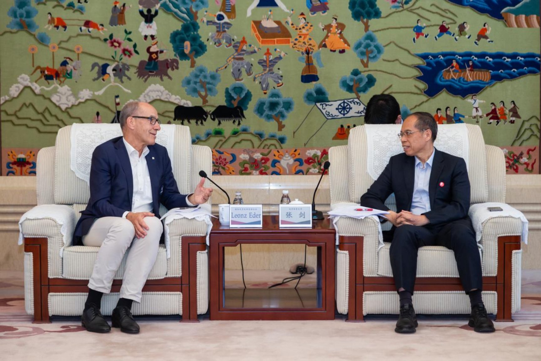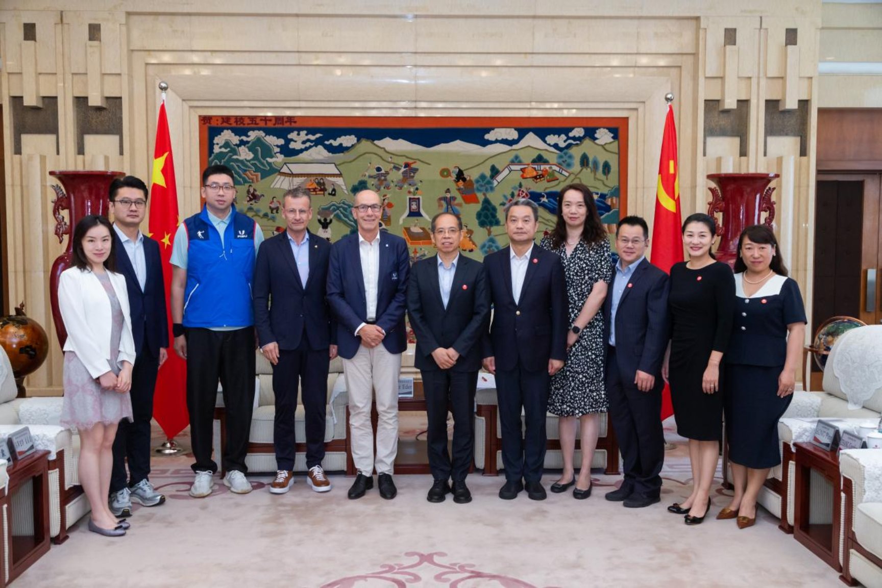 6月17日上午,国际大学生体育联合会主席雷诺·艾德(Leonz Eder)、秘书长兼首席执行官马蒂亚斯·雷蒙德(Matthias Remund)一行来校交流访问,中国学生体育联合会对外联络部主任董小华陪同来访。校长张剑会见代表团。
