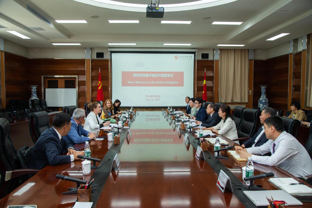 5月28日,塞尔维亚教育部助理部长米娜·齐罗耶维奇(Mina Zirojević)一行6人来我校交流访问。校长张剑会见代表团。