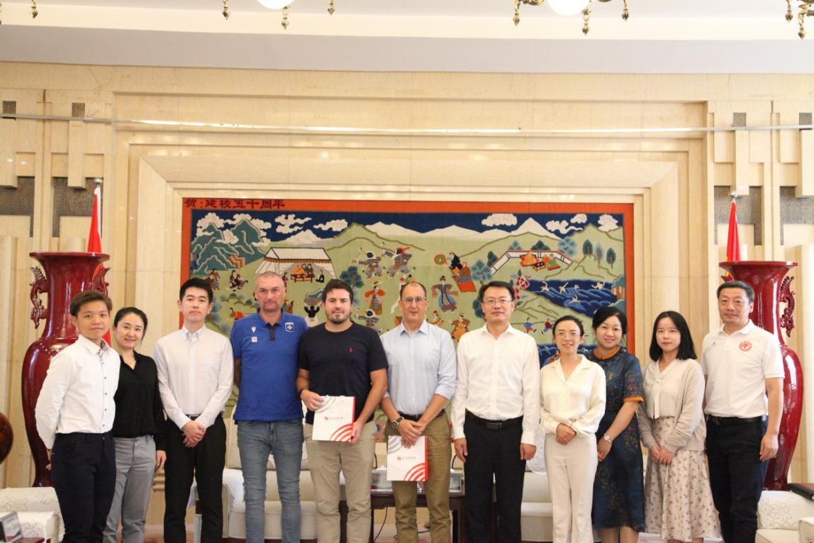 9月14日上午,法国体育俱乐部主席大卫·甘亚兹(David GUIGAZ)率代表团一行6人来我校交流访问。党委常委、副校长王良玉会见代表团。