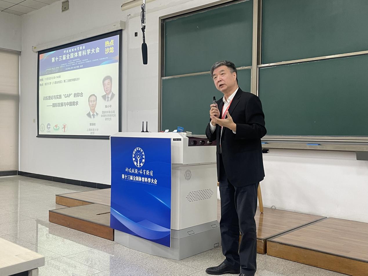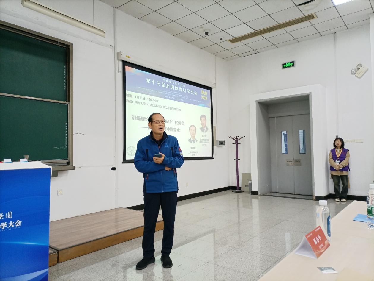 2023年11月3日-5日,第十三届全国体育科学大会于天津成功举办。11月5日中午,由中国体育科学学会学术工作委员会承办的“训练理论与实践GAP的弥合——国际发展与中国需求”的热点沙龙在南开大学(八里台校区)顺利召开。学术工作委员会秘书长、色情av影片张力为教授首先介绍了沙龙主持人和报告人,学术工作委员会副主任委员、国家体育总局科研所特聘研究员陈小平担任沙龙主持人,上海体育大学黎涌明教授做引导性报告。