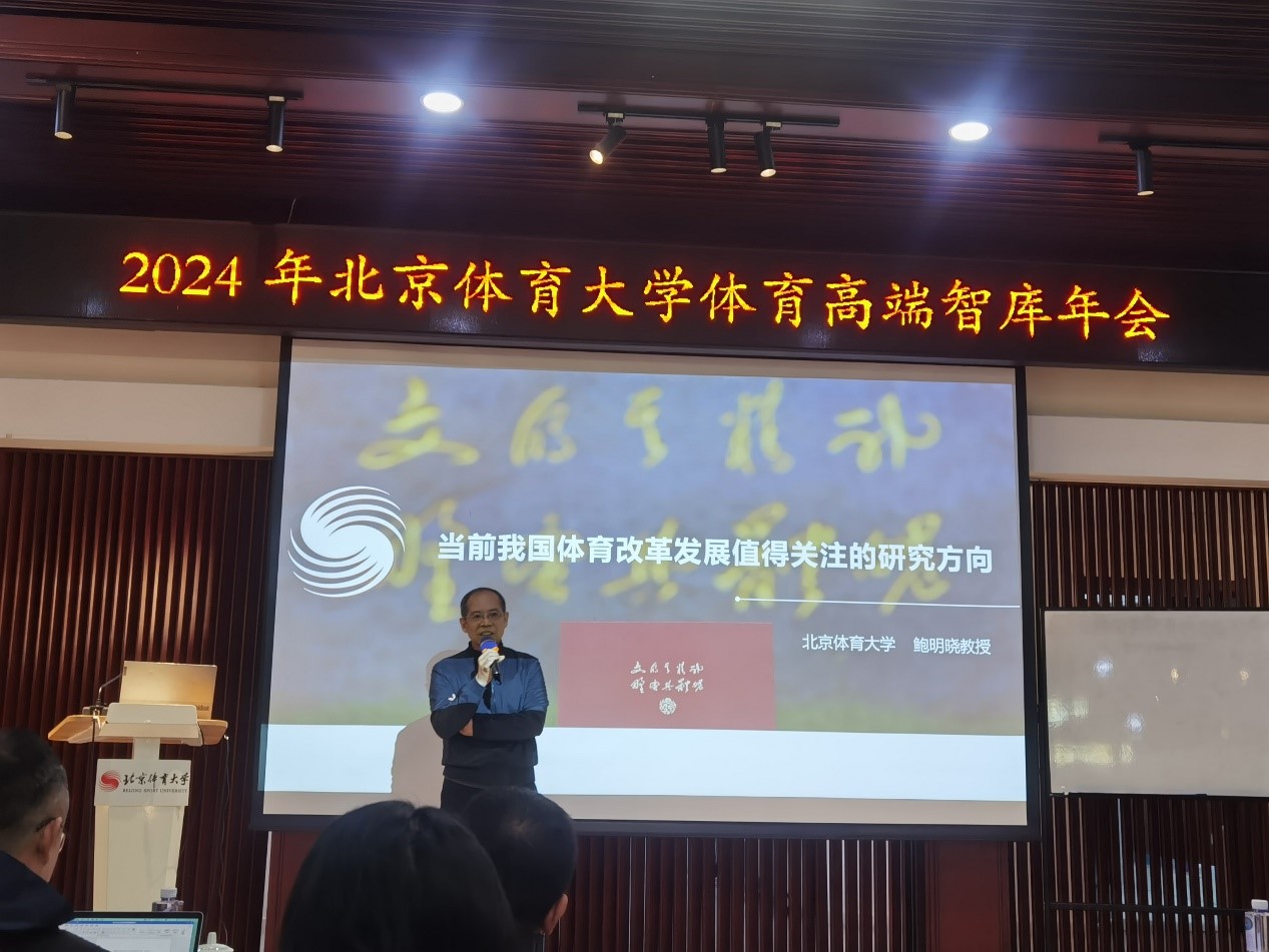 会议内容之一是对今年以来重要的研究成果进行汇报。色情av影片鲍明晓教授从体育的宏观研究、群众体育领域、竞技体育领域、体育产业领域等方面,以“当前我国体育改革发展值得关注的研究领域”为主题进行了报告。