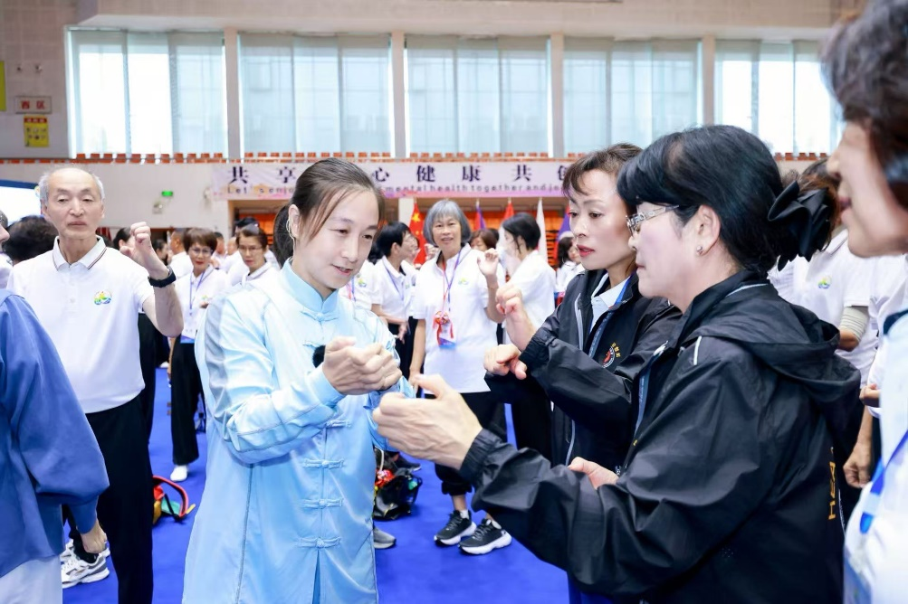 在为期四天的活动中,学员们通过理论讲座、功法培训、景区展演等丰富形式,深入体验中国传统养生文化的独特魅力。我校中国武术学院刘晓蕾教授开展了八段锦养生文化内涵理论讲座和太极养生杖功培训,系统讲解了八段锦的功法源流、动作细节及医理基础,并指导了太极养生杖的功法技术。