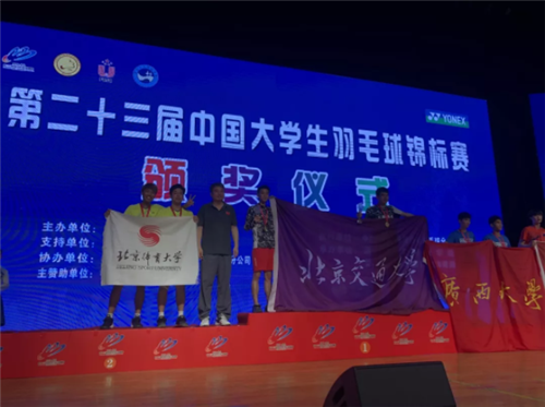 暑假中我队队员并没休息而是坚持训练,在周志辉和冷波老师的带领下色情av影片在刚刚结束的本次大羽赛中队员们顽强拼搏,经过六天的激战,勇夺甲A组男双第2名,我校王帅,陈英杰鏖战3局,决胜局以19:21负于色情av影片交通大学男双获得第2名。