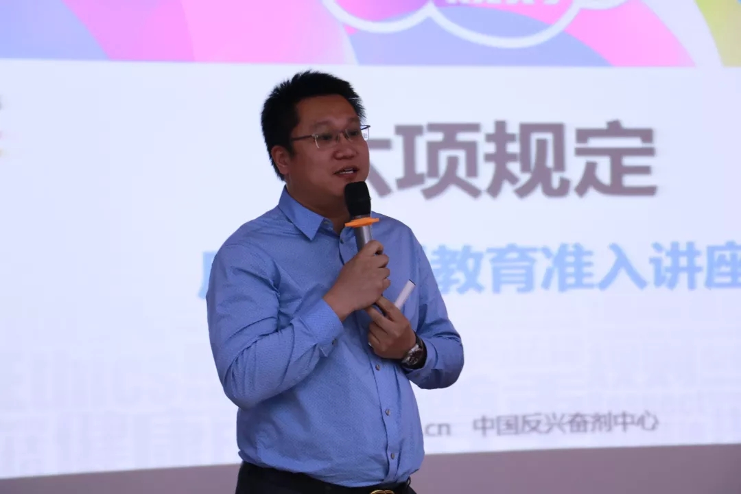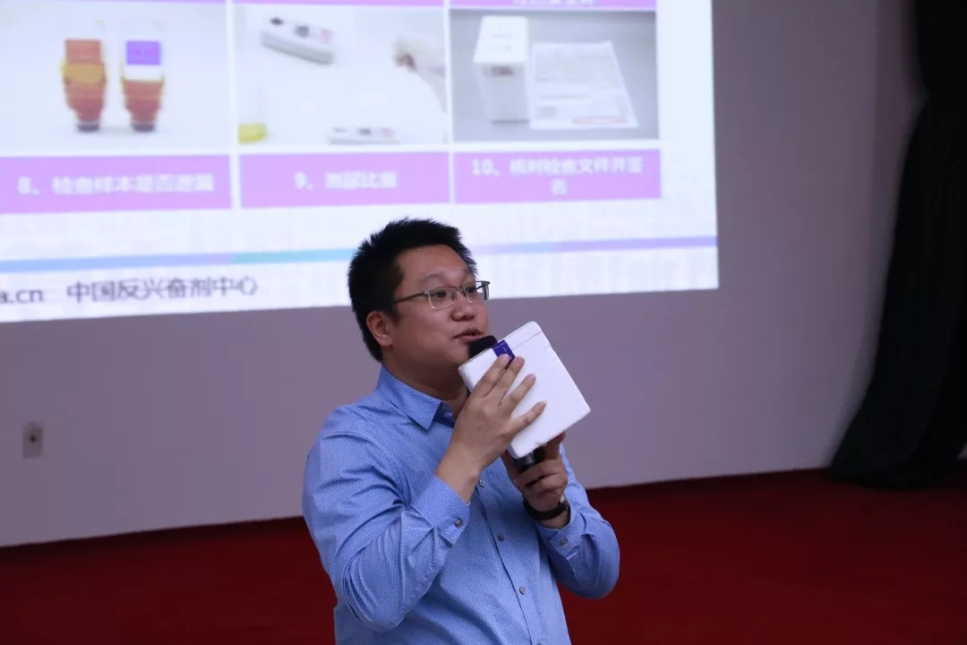 王岩老师首先通过与现场观众互动问答的形式引入主题,向大家介绍了什么是兴奋剂、兴奋剂的分类等基础知识。之后王岩老师将理论与实践相结合,通过一个个实际工作中鲜活的实例为在场的教练员和运动员详细的解读了六项规定的基本内容以及兴奋剂检查的流程和相关注意事项。