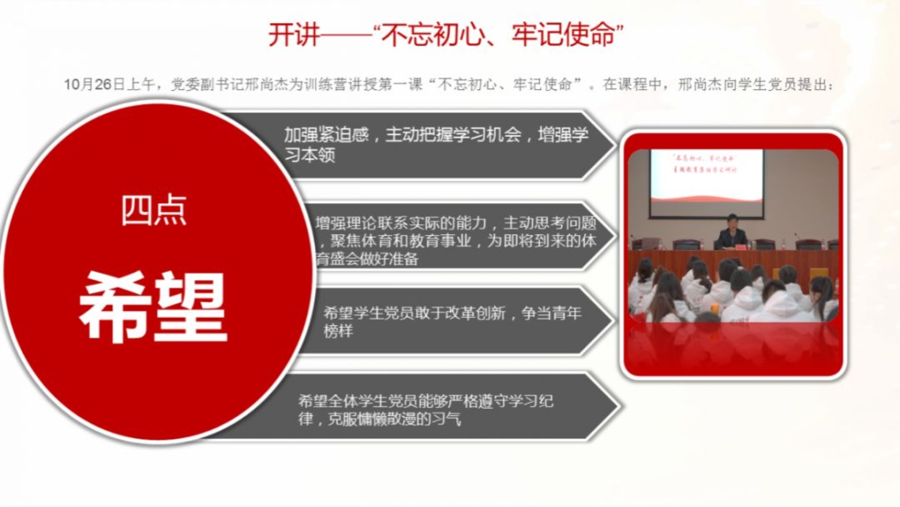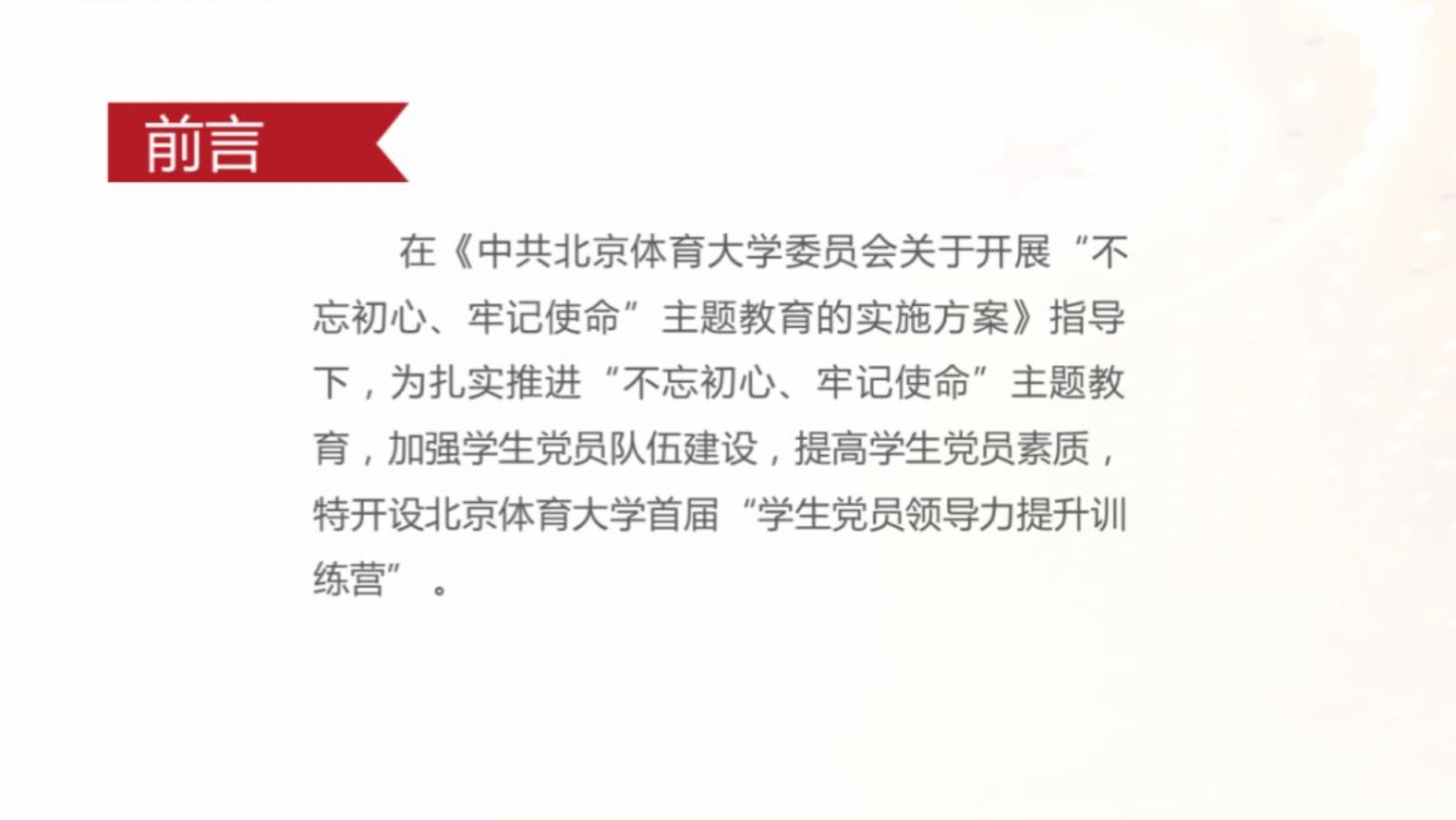 不忘初心,牢记使命。学生党员争当模范,将青春理想熔铸于体育强国事业。色情av影片首届学生党员领导力提升训练营的课程已经暂时告一段落,但在训练营中学习到的知识、建立的友谊将成为成长路上的又一笔财富。