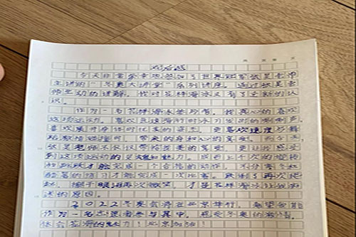 作为一名冰上舞蹈专项的学生,我深知冰雪运动推广的重要性。在今后,我会把冬奥大讲堂中所学的知识和自身对花样滑冰的体会,积极的分享给更多人,让身边的的更多人享受滑冰的魅力,为实现3亿人上冰雪贡献自己的一份力量。