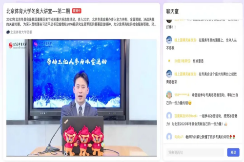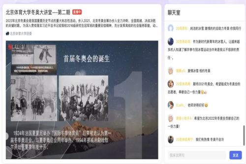 讲座期间,我校学生骨干组成了"线上蓝精灵"志愿服务团队,在评论区为大家进行专业知识讲解和相关冰雪知识普及,及时回答观众疑问,与观众间建立起了良性互动,极大提高了观众们的参与热情。