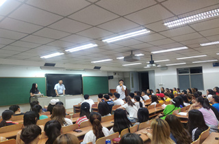 辅导员许可老师首先对各位新同学的到来表示热烈的欢迎,并且让新生们踊跃进行自我介绍,场面一度充满着欢乐的气氛。紧接着,许可老师主要针对接下来的军训生活需要注意的事项和日程安排进行了详细的说明和要求。