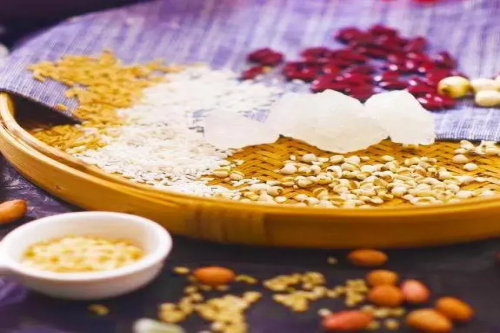 小米、菱角米、栗子、红江豆、去皮枣泥等,