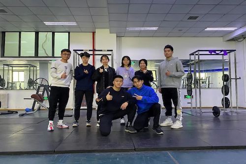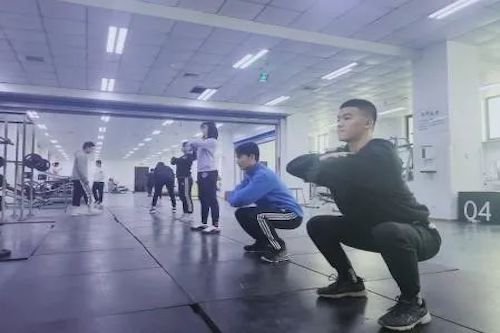 11月8日上午,体育课程教学活动体能培训在体能大厅进行,体能训练学院2018级本科生李德红担任教练。