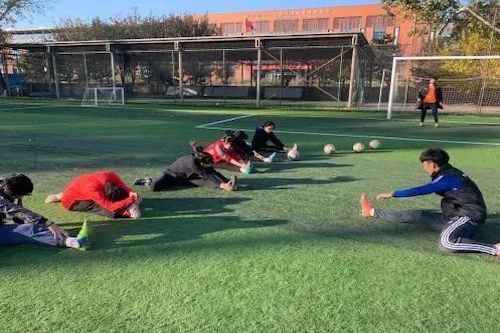 课程开始,教练员带领同学们做了准备活动,培养了同学们的团队精神,锻炼了反应灵敏性。在技术训练环节,教练员带大家做了传接球训练、脚底拉球、脚内侧扣球等球感训练,并对错误动作进行了纠正。最后进行了眩晕点球游戏。