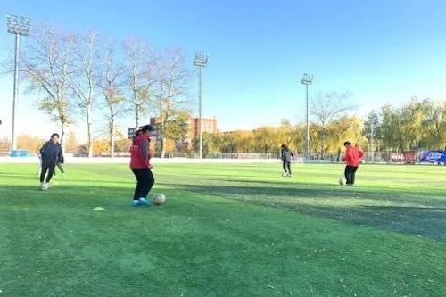 11月8日下午,体育课程教学活动足球培训在1号足球场进行,中国足球运动学院学生会教练裁判部的同学带领同学们开展了足球知识技能的学习。