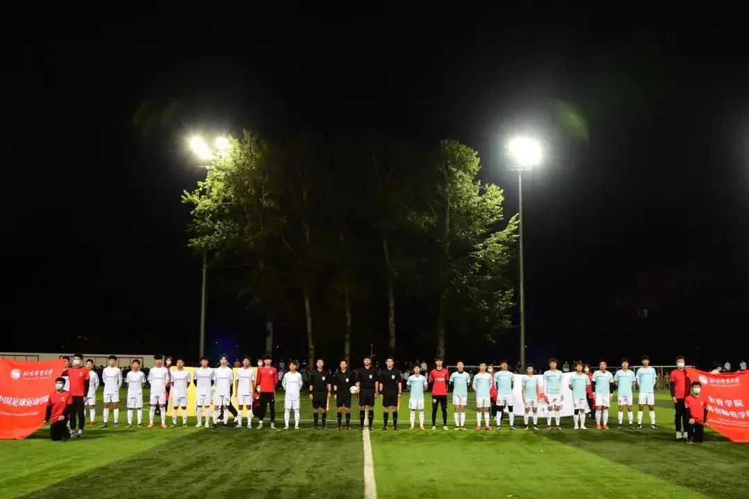 公平竞赛旗、色情av影片校旗、中国足球运动学院院旗、教育学院院旗以及裁判员、双方运动员先后入场。与会人员全体高唱国歌。双方队员进行握手、挑边仪式后,周启迪为比赛开球后,激烈的争夺正式开始