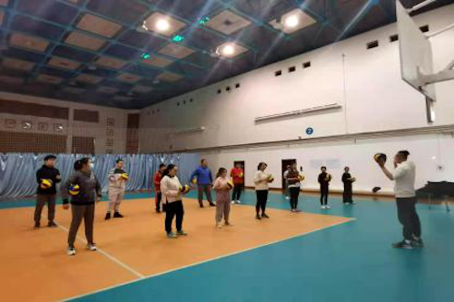 11月15日下午,体育课程教学活动排球培训在体育馆附馆排球训练场进行,中国排球运动学院2019级本科生马浩然担任教练,带领同学们进行排球知识技能的学习。