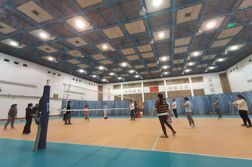 课程开始,马浩然带领同学们进行了跑步等热身活动。在技术训练环节,马浩然带领同学们进行了对墙练习,并在熟练扣球基本要领后对每个人展开一对一上步加扣球教学,耐心为每位同学纠正动作失误。最后,同学们平均分成两队,进行综合对垫、扣球练习。练习经过磨合期后渐入佳境,同学们打出精彩配合,在练习中展现了水平,建立了友谊。