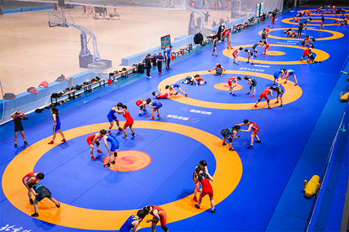 2023年4月7日下午四时许,走进北体大二七国家冰雪运动训练科研基地速滑馆,是一番全新景象。外圈正在进行有氧跑的北体大跆拳道队,大道摔跤垫上正在进行技术打磨的摔跤运动员,还有由西至东六块篮球场地上依次进行专项训练的国家二队女篮、山东女篮、国家三人女篮......